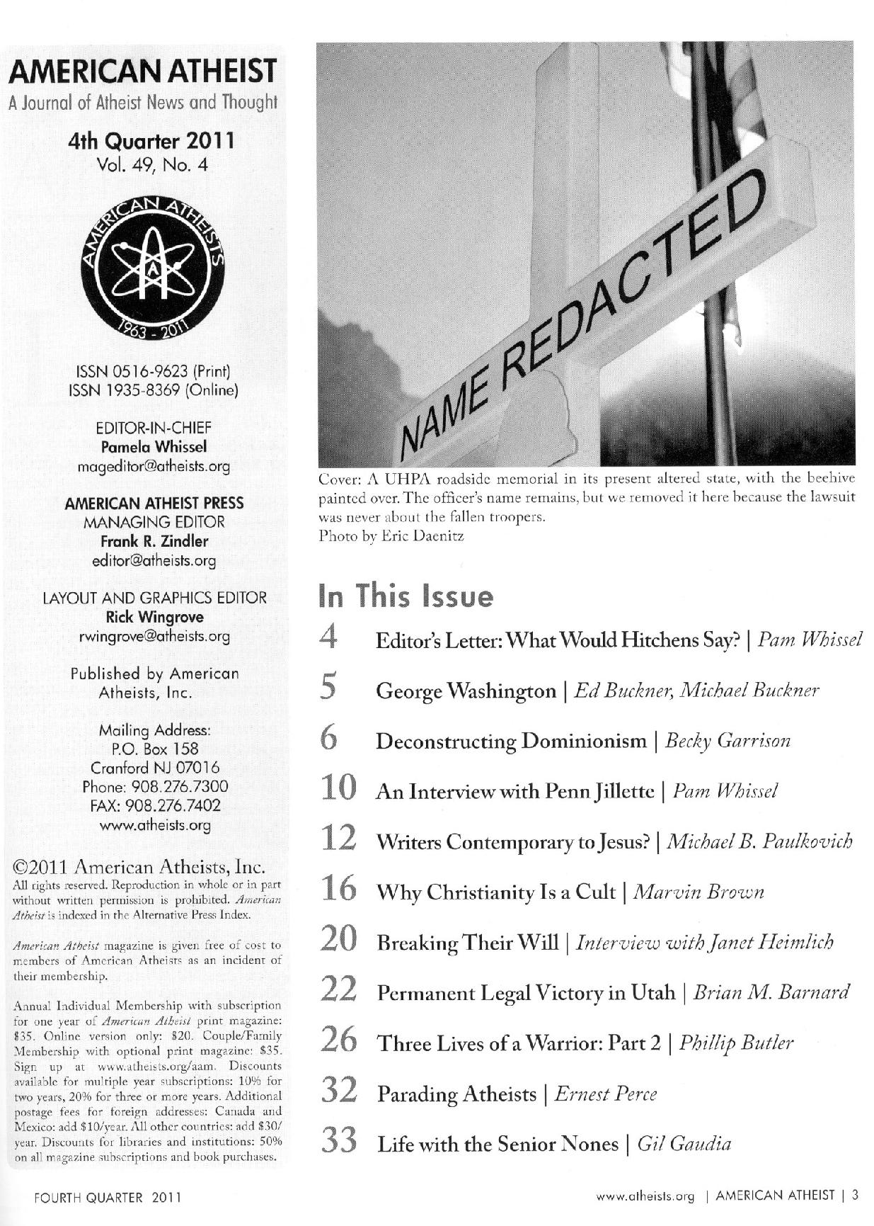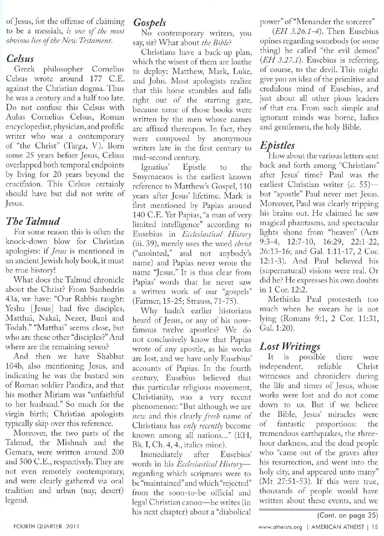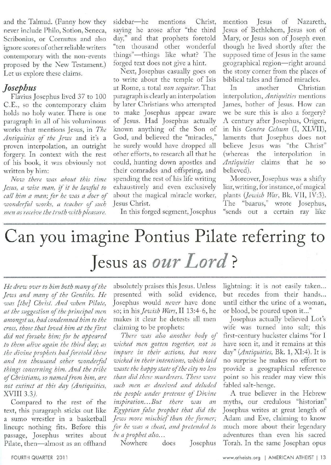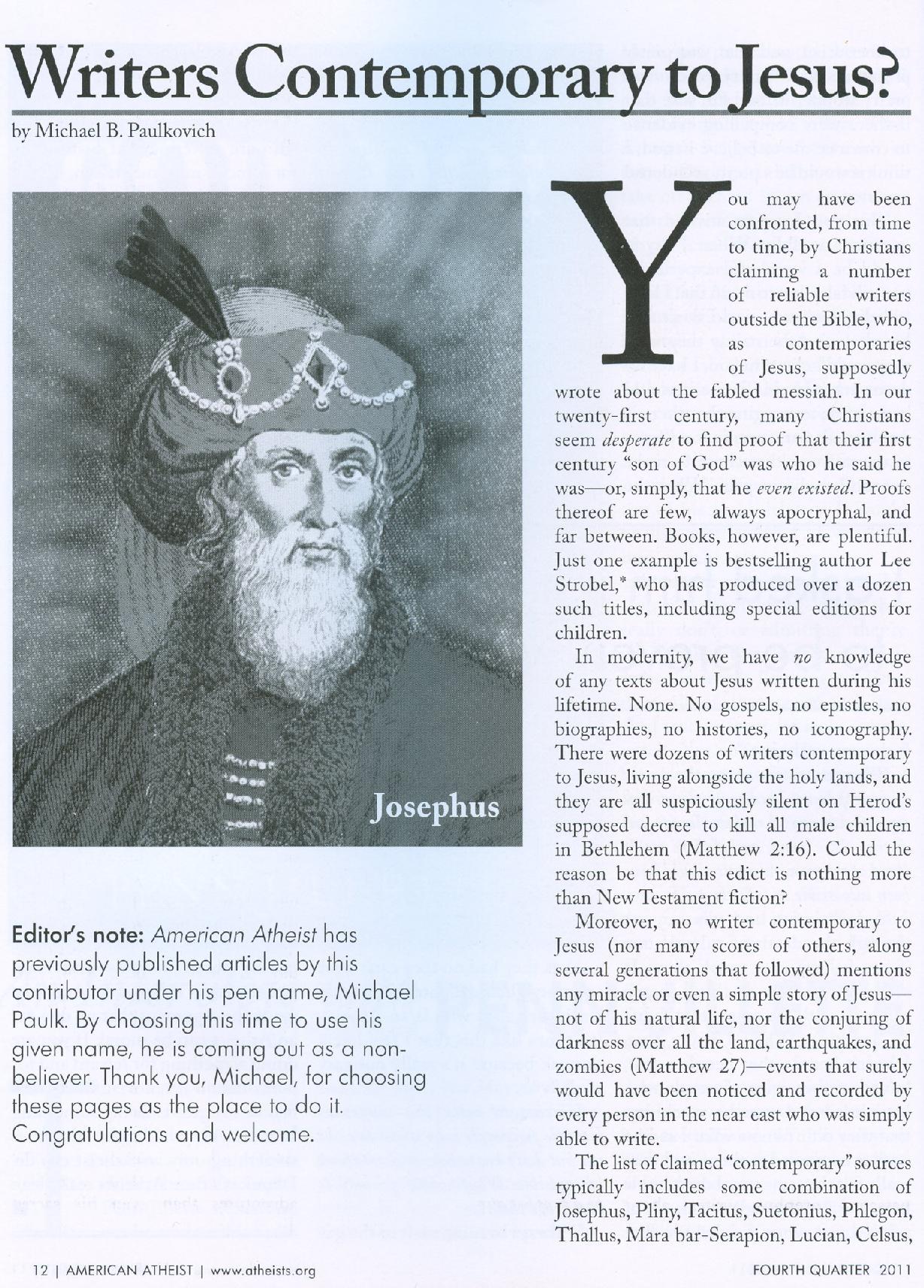 "Writers Contemporary to Jesus," American Atheist 4th Quarter 2011