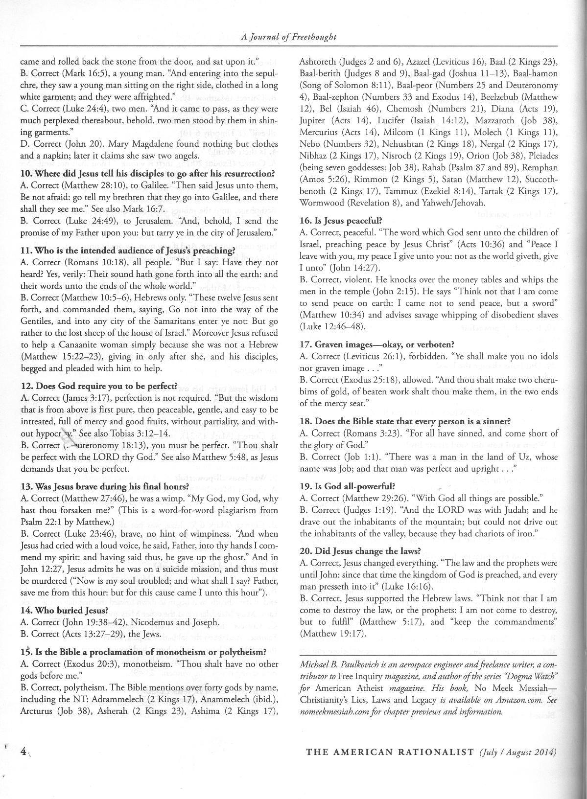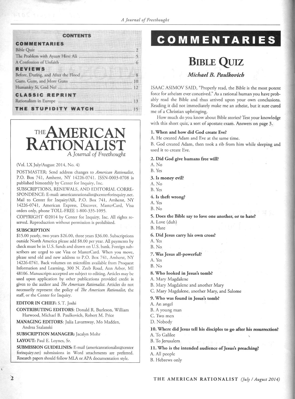 "Bible Quiz," The American Rationalist, July/August 2014