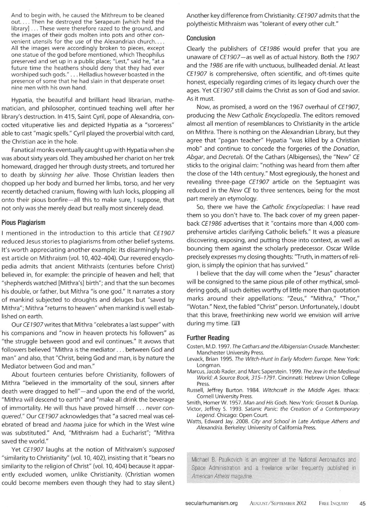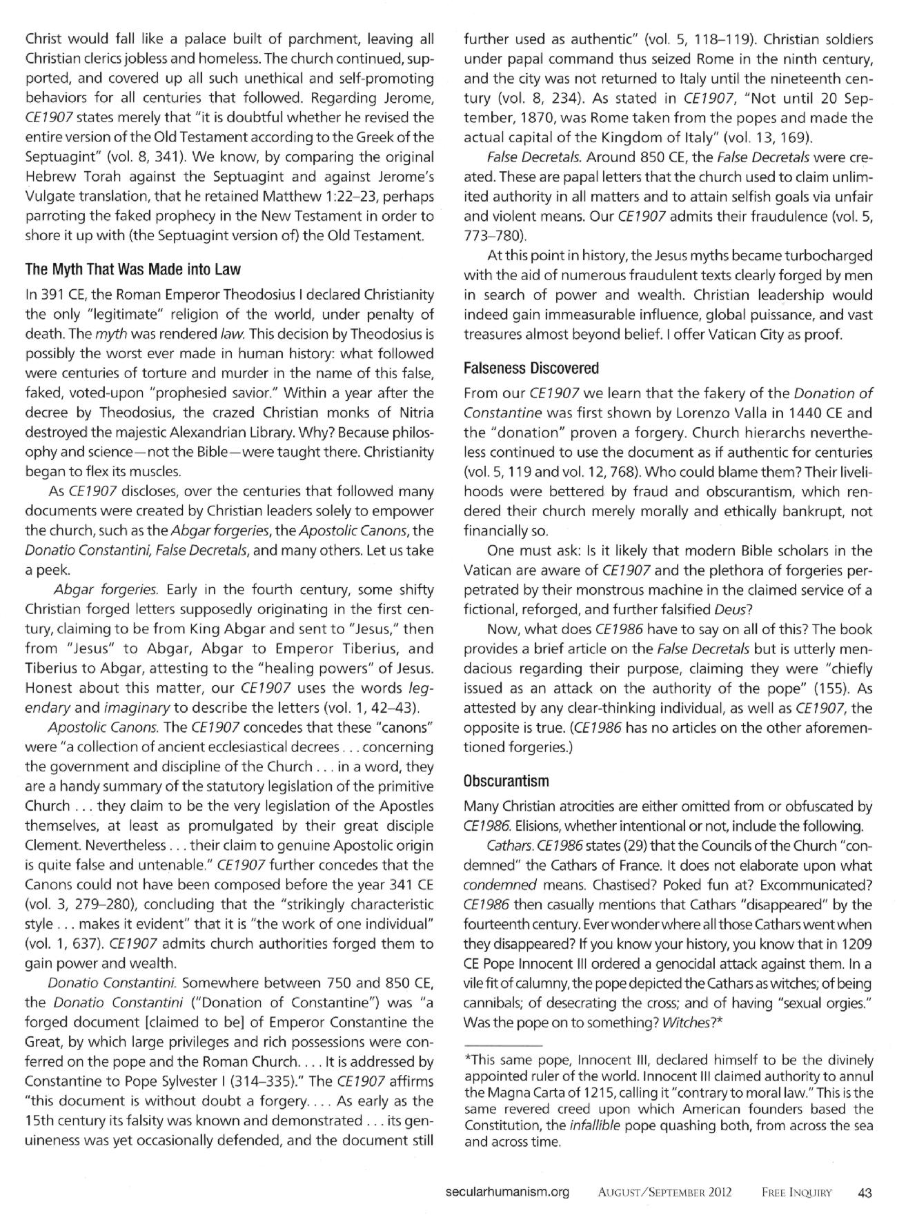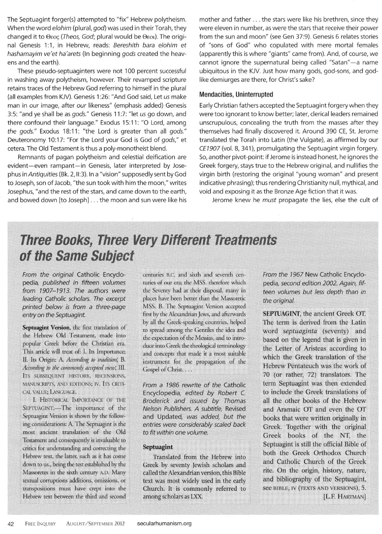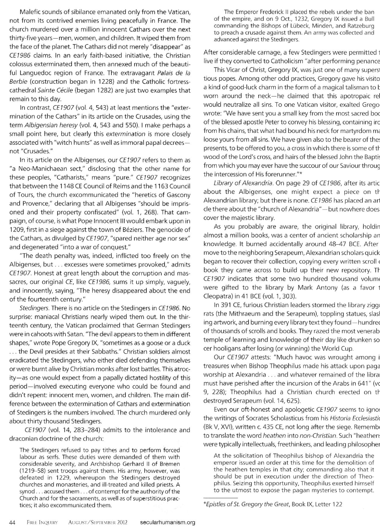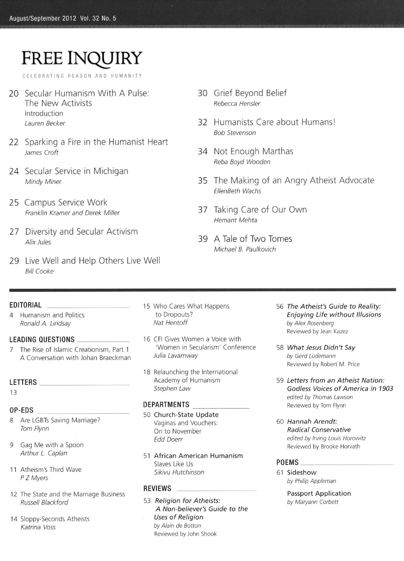 "A Tale of Two Tomes," Free Inquiry, Aug/Sep 2012
